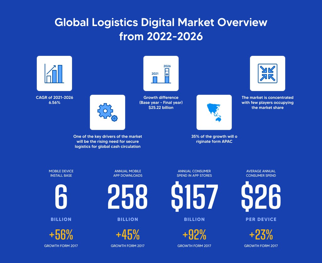 Market Overview of the Digital Logistics Market Expensive truck ownership and maintenance, regular truck wear and tear, fleet management, warehouse management, and route optimization all have an impact on the logistics industry. Logistics app development can assist firms in dealing with the aforementioned difficulties.